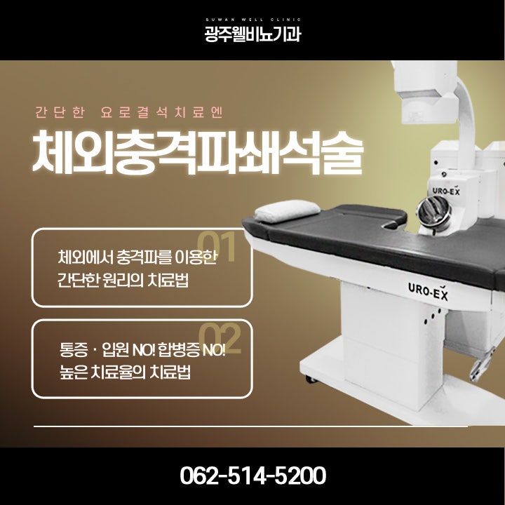 요로결석증은 갑작스러운 통증이기 때문에 요로결석증 증상이 상시 나타난다면 즉시 웰클리닉을 찾는 것이 가장 좋습니다. 4가지 측면에서 시행할 수 있는데 진단과정에서 가장 중요한 것은 통증을 완화시킬 수 있다는 점이다. 엑스레이 검사는 결석이나 큰 결석의 위치를 바로 확인할 수 있는 단순 단층촬영이고, 소변검사는 소변에 혈액이 섞여 나오는지 확인하는 검사다. 소변과 같은 상처에서 새기 때문에 요로결석증을 의심할 수 있으며 조영제 검사가 엑스레이 검사보다 더 정확한 검사라고 볼 수 있습니다. 위치를 찾는 테스트입니다. 많은 경우에 조영제를 사용하면 CT 스캔에서 놓쳤을 수 있는 결석을 드러낼 수 있기 때문에 조영제 검사는 요로 결석을 진단하는 매우 간단한 방법입니다. 요로 결석은 조영제에 대한 알레르기 반응과 심각한 부작용이 있는 사람들을 위해 초음파로 진단할 수 있습니다. 초음파는 또한 일부 신장 결석 및 기타 이차적 상태를 확인할 수 있습니다. 체외충격파쇄석술은 오늘날 가장 안전하고 빠른 의료기기 중 하나입니다. 수술과 함께 통증이 심할 때 체외충격파를 먼저 시도하는 환자들이 많다. 점점 커지는 추세라 체외충격파가 1순위가 아닐까 생각합니다. 요로결석에 노출된 적이 있다면 당연히 수술적 치료를 고려할 수 있지만 비용과 시간을 생각하면 치료시간이 30분 정도이니 1차병원의 저렴한 비용이 환자들에게 큰 도움이 될 것이라고 생각합니다. 마지막으로 요로결석은 창피한 질환이 아니라 통증만 생각한다면 가장 고통스러운 통증이라는 점을 모든 환자분들께 당부드리고 싶습니다. 노하우와 경험 요로결석에 대해 궁금하신 사항이 있으시면 언제든지 062-514-5200으로 연락주시면 기다리겠습니다. 감사해요.