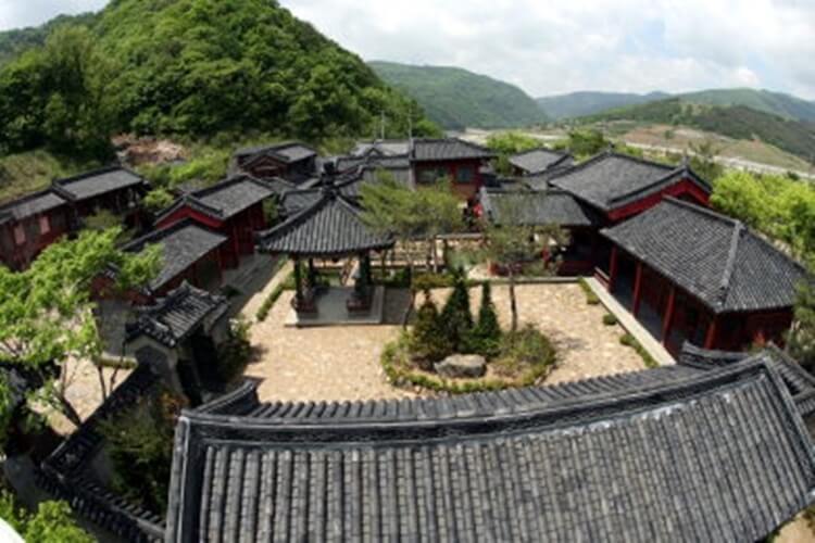 단양에서 영춘면으로 가는 길은 강둑 절벽이 시야를 가리는 남한강을 따라 달리는 아름다운 드라이브 코스다. 영춘면 입구에서 금사로 방향으로 방향을 틀자 웅장한 온달관광지 입구에 거대한 기와가 솟아올랐다.