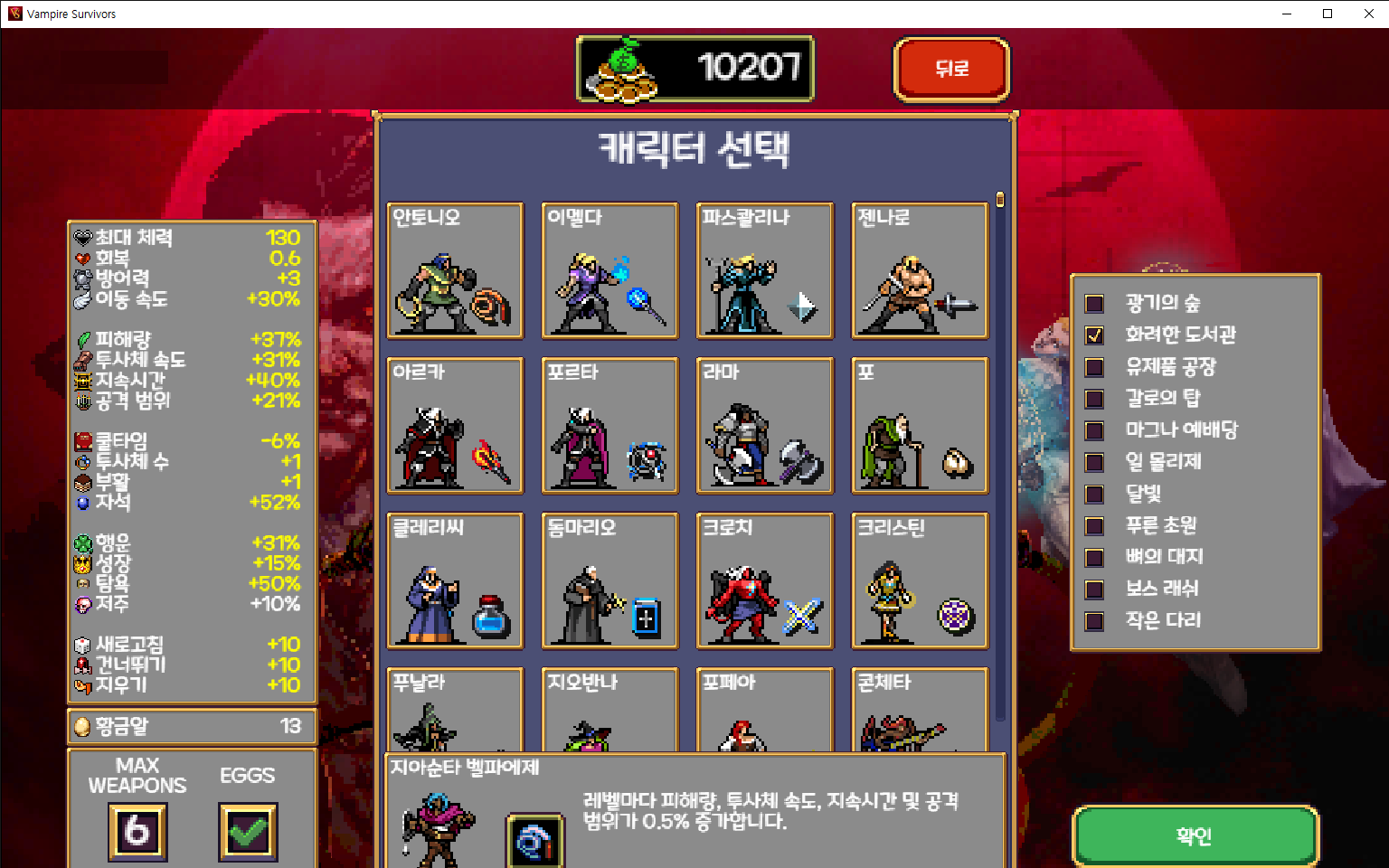 진화 조합에 따라 선택하여 강력한 무기를 얻을 수도 있고, 진화 조합은 아니지만 시너지 효과가 좋은 장비를 선택할 수도 있습니다.