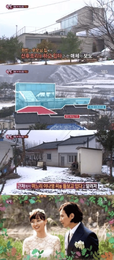 원빈이 부모님을 위해 마련한 호화로운 집에서 산후조리를 하기로 한 이나영을 위해 원빈의 부모님은 다른 곳에 머물며 며느리에게 집을 내어주는 등 정성을 보였다.