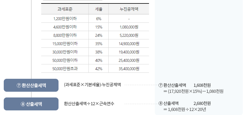 환산급여공제는 다시 환산급여가 되고, 환산급여에서 환산급여공제를 빼면 과세표준액이 된다.