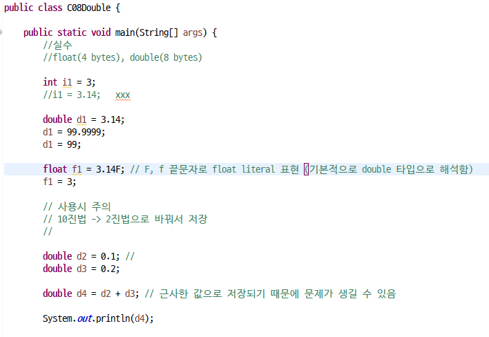– (실수)float, double