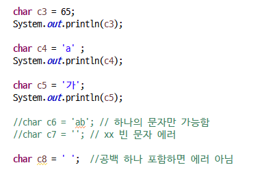단일 문자 값 저장